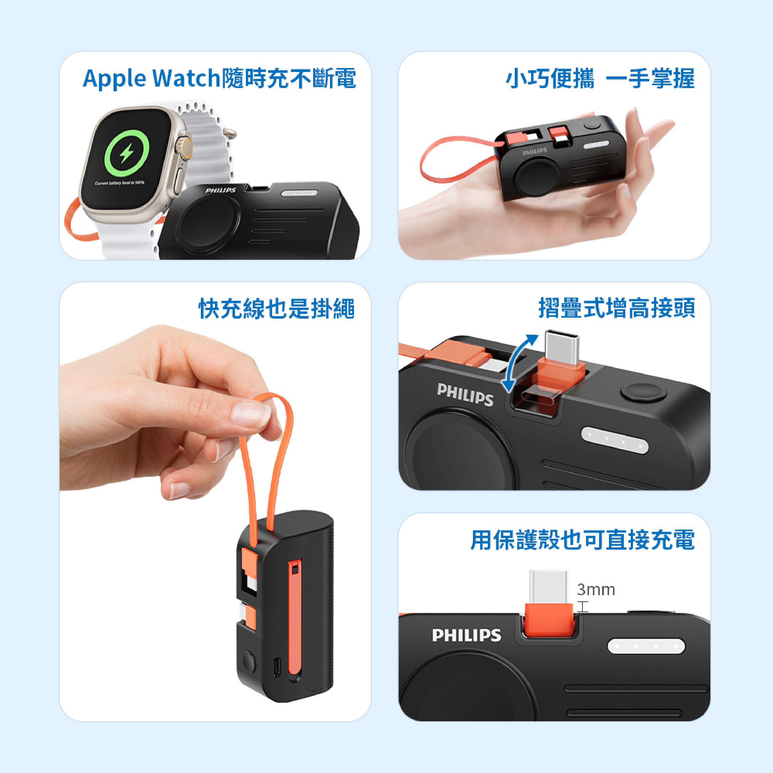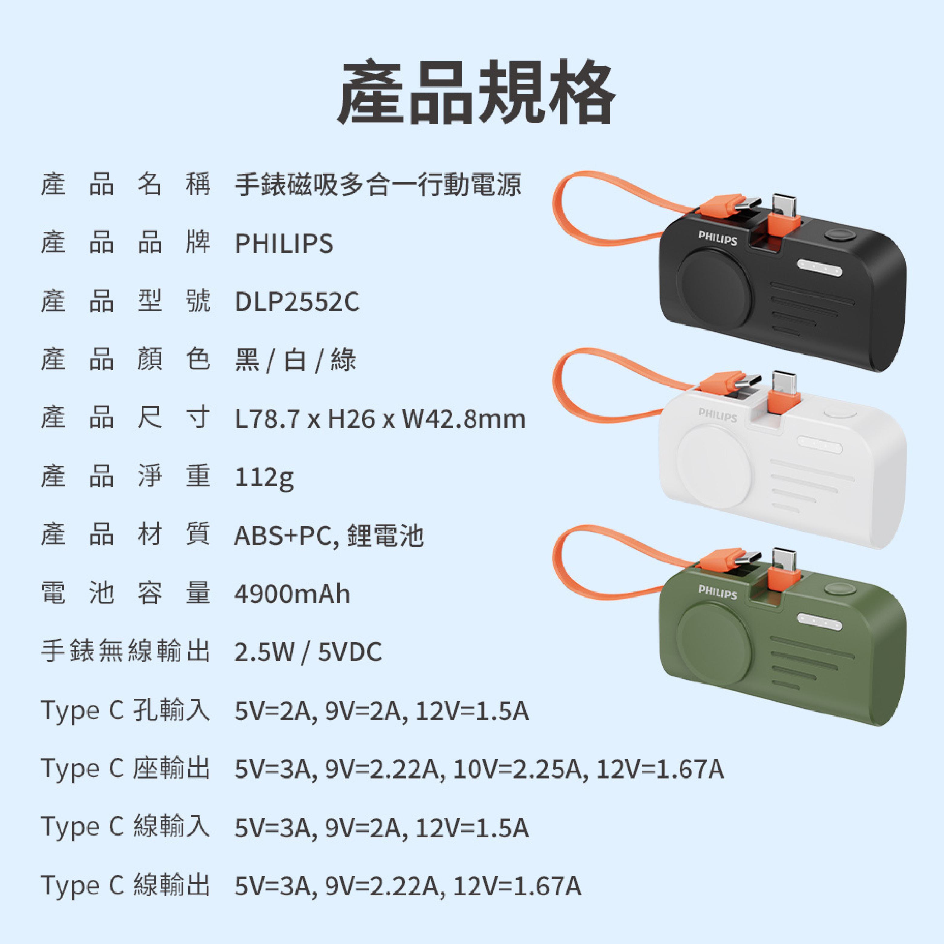 開團優惠【PHILIPS飛利浦】手錶磁吸+多合一行動電源-Type C DLP2552CM