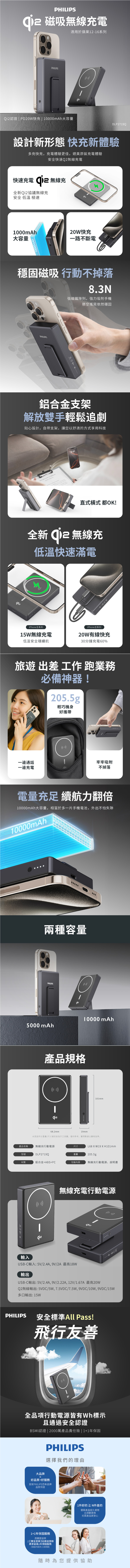 新品上架【Philips 飛利浦 】DLP2719Q QI2.0 10000mAh 立架式磁吸無線快充行動電源