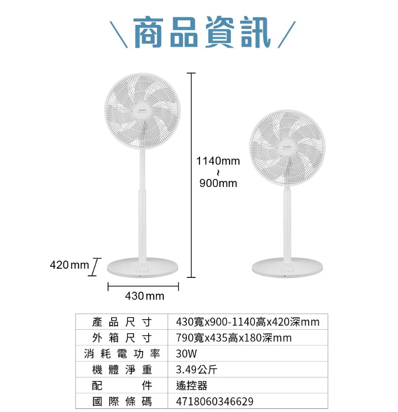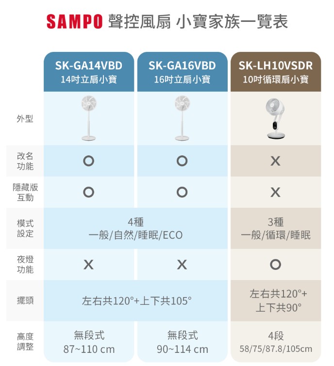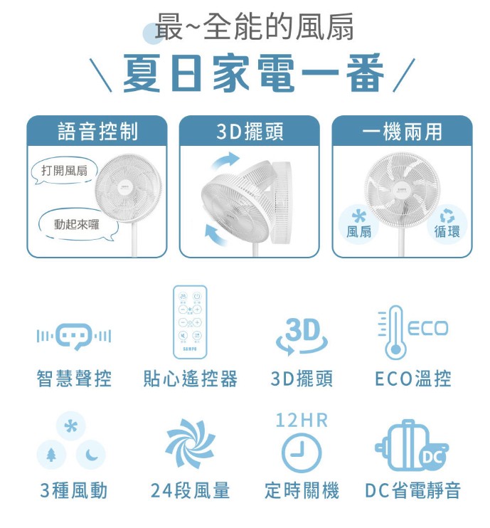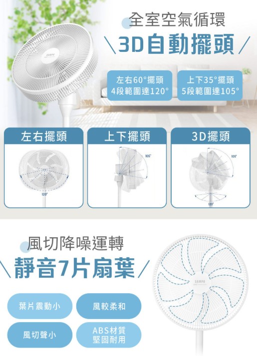 小寶2.0|小寶電風扇/小寶小寶 【SAMPO 聲寶】智能聲控3D循環DC馬達立扇(SK-GA14VBD/SK-GA16VBD) 附遙控器