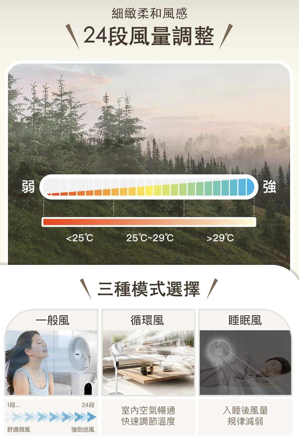 🌬️ 24 段風量調整:風感更細膩,一年四季都適用