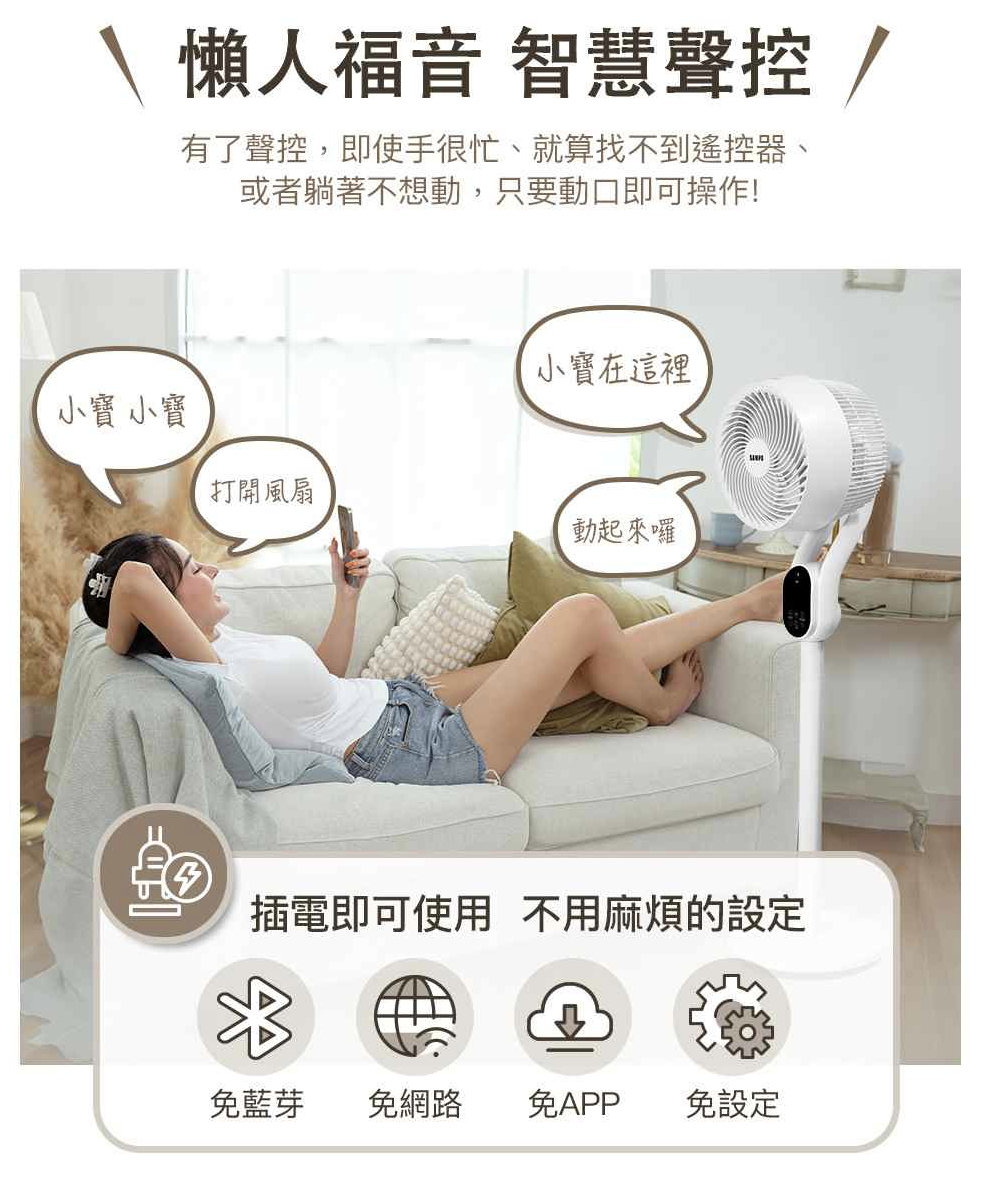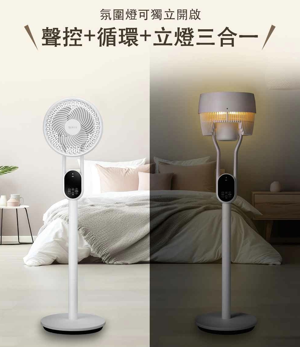 而是把 循環扇+立燈+聲控操作 直接整合在一起