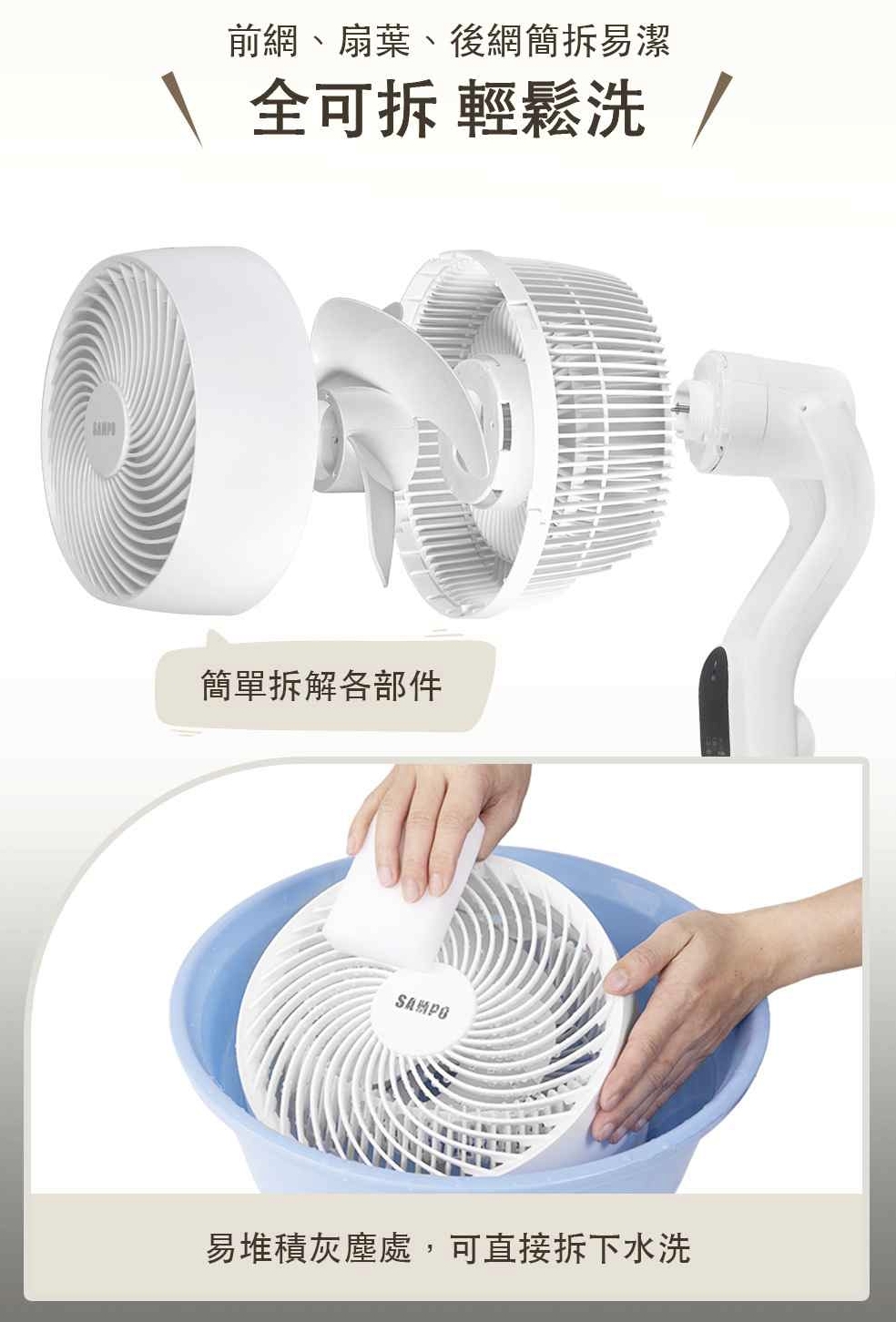 🧩 全可拆設計:前網 / 後網 / 扇葉皆可拆洗