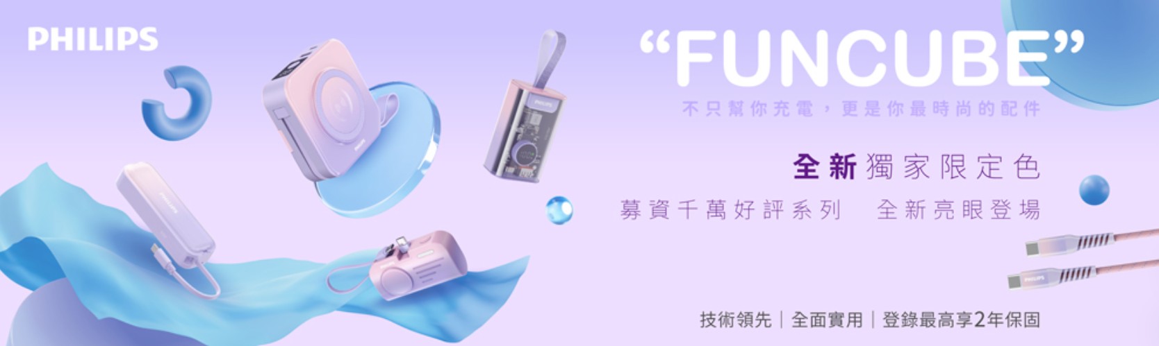 PHILIPS 飛利浦推出的限定色「粉紫漸變行動電源」